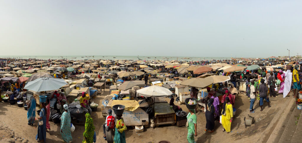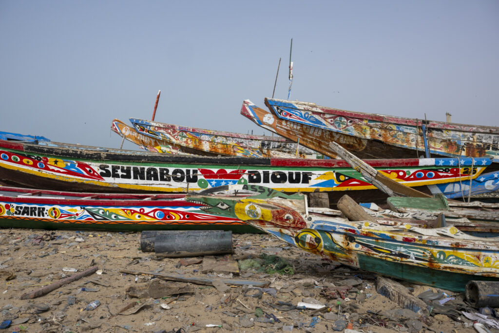 Le retour de pêche à M’Bour est un moment où toute la ville semble converger vers la plage. Au loin, les pirogues colorées apparaissent à l’horizon comme une procession lente, glissant sur l’Atlantique.